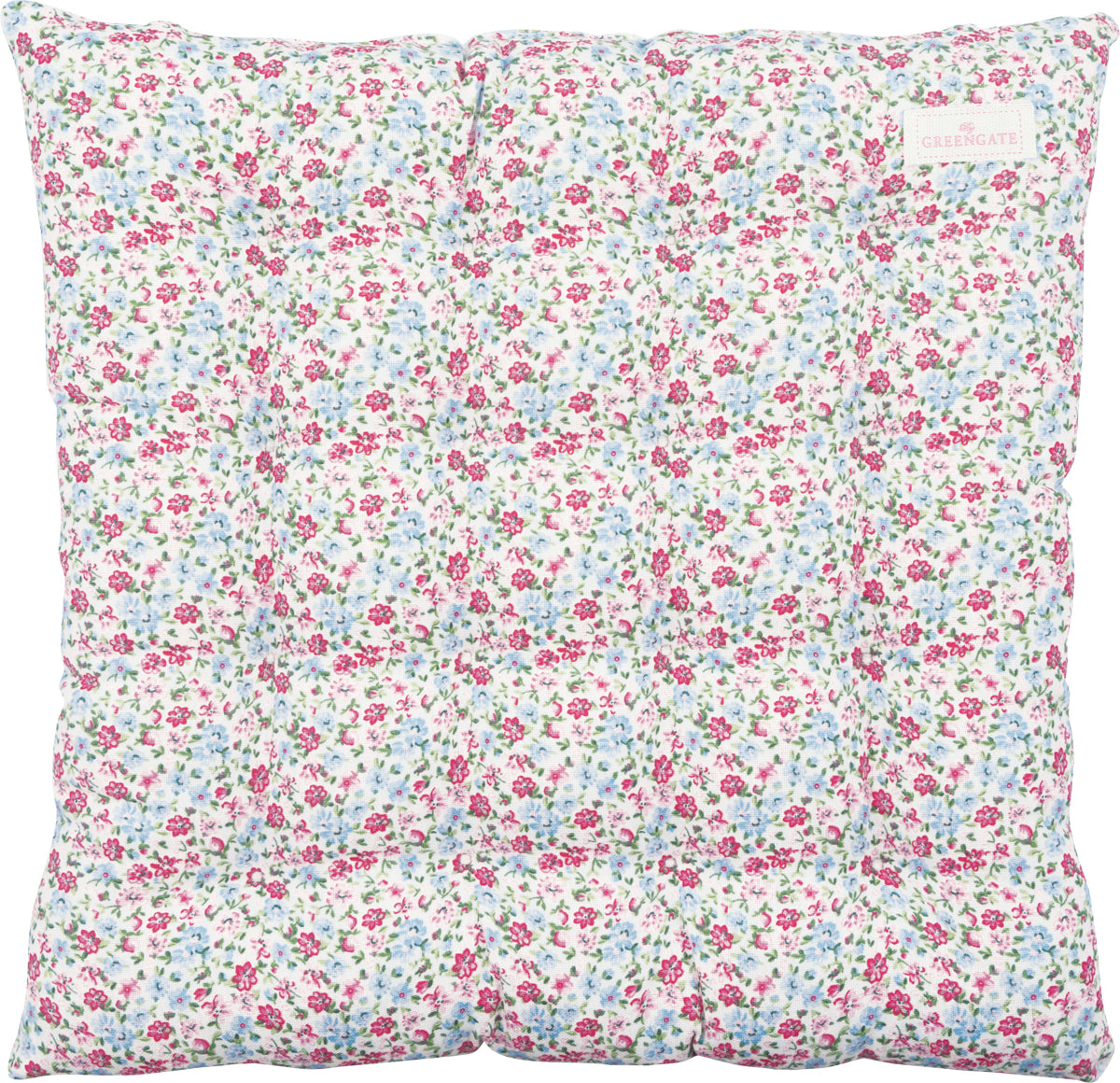 Zauberhaftes Sitzkissen, Bezug aus reiner Baumwolle, Füllung aus Polyester, Oeko-Tex zertifiziert, Handwäsche, ca. 40x40cm groß, wendbar, auf einer Seite die kleinen Louisa Blümchen, auf der anderen größere Blüten.